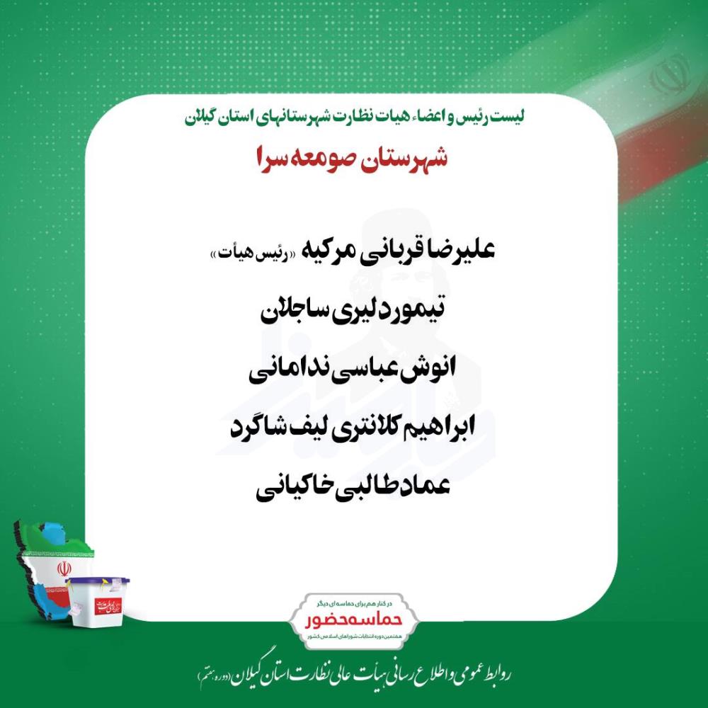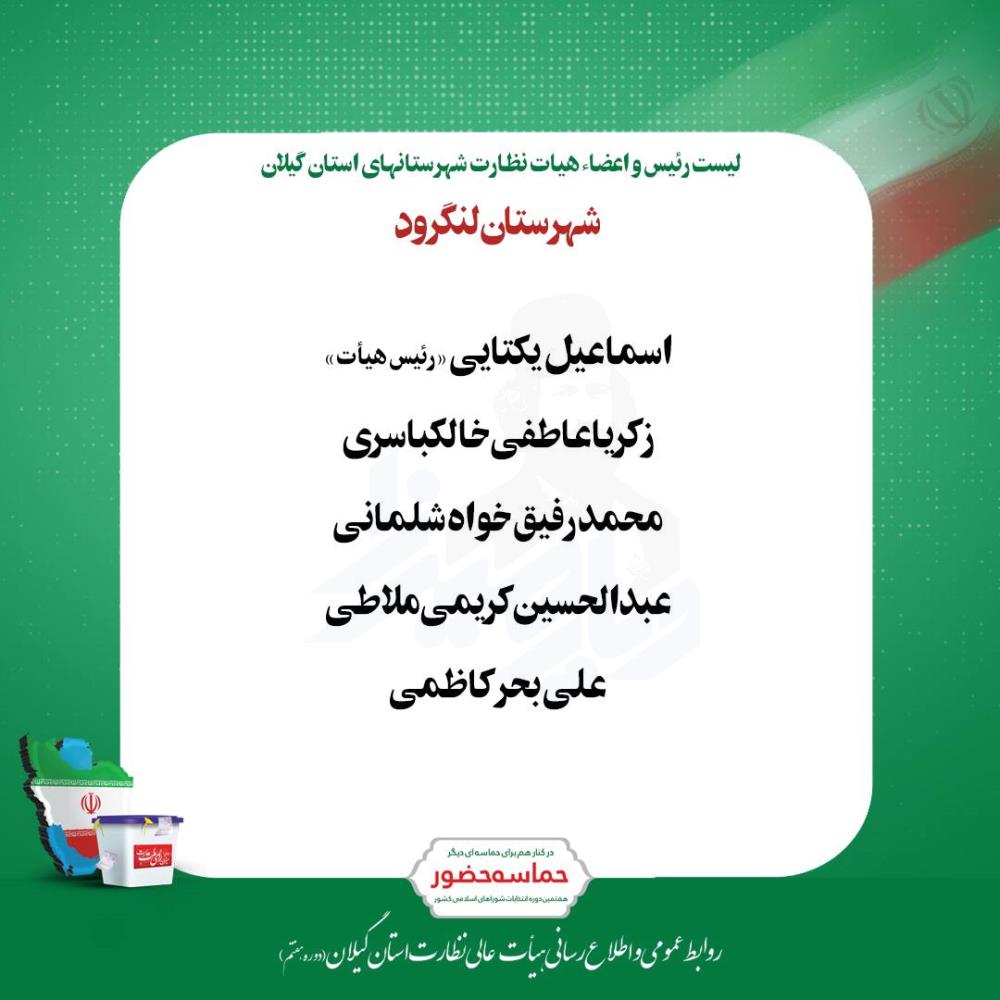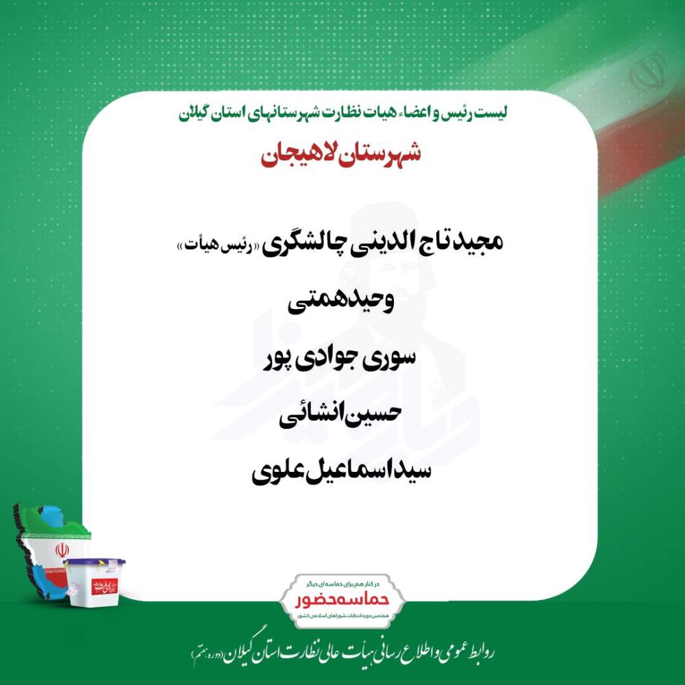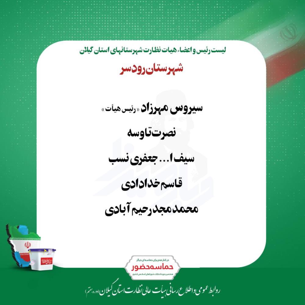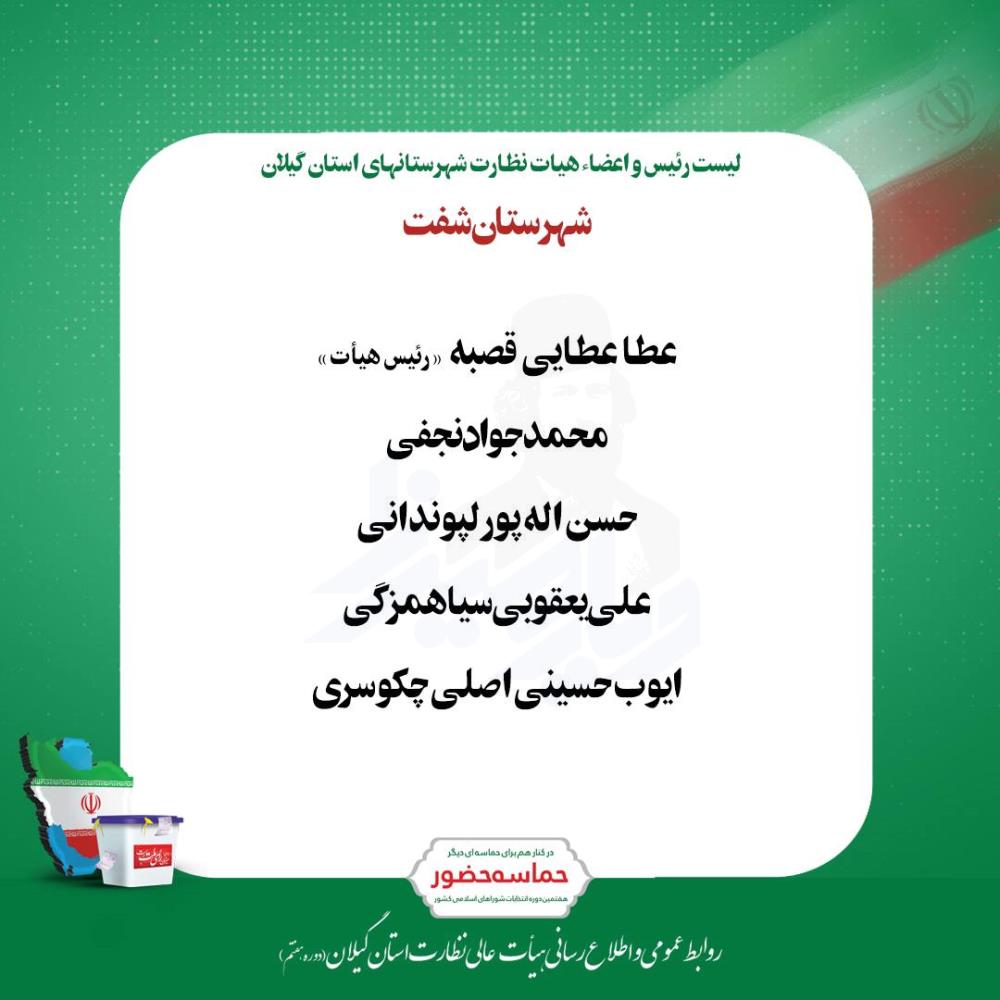 بر اساس حکم هیأت مرکزی انتخابات شوراهای اسلامی کشور، اعضای هیأت نظارت شهرستان‌های استان گیلان برای انتخابات شورای هفتم مشخص شدند.